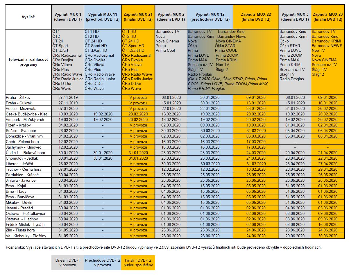 Terminy prechodu na DVB-T2